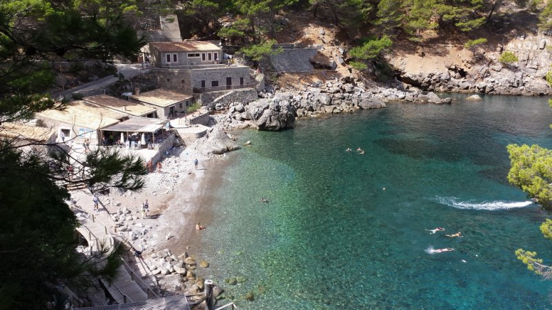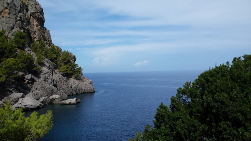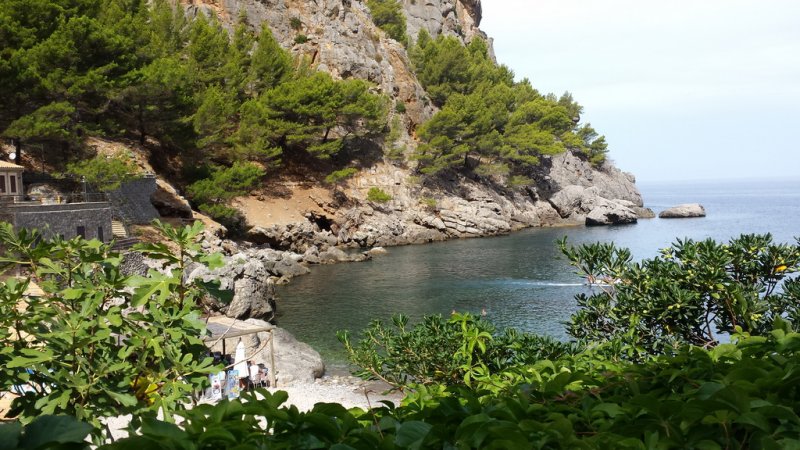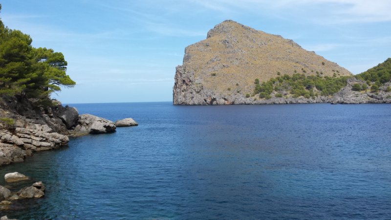 Auf dem Rückweg von Sa Calobra empfehlen wir Dir noch einen Besuch der Cala Tuent. Auf dem Weg dahin solltest Du Dir Zeit nehmen und an den Anhaltestellen den Blick auf das Meer genießen. Außerdem hast Du hier fantastische Fotomotive mit Blick auf das Meer und die steile Küste. Leider gibt es an der Cala Tuent keinen Parkplatz, Du kannst das Auto aber kostenlos an der Straße welche zum Strand führt abstellen. In der Hochsaison ist aber auch das nicht einfach wenn Du nicht gerade am frühen Morgen da bist. Der Strand der Cala Tuent ist 170 Meter lang und 30 Meter breit und ein feiner Kieselstrand. Liegen und Sonnenschirme gibt es hier aber nicht, ebenso kein Restaurant. Daher solltest Du die Verpflegung mitbringen, falls Du einen ganzen Tag an der Bucht verbringen möchtest.