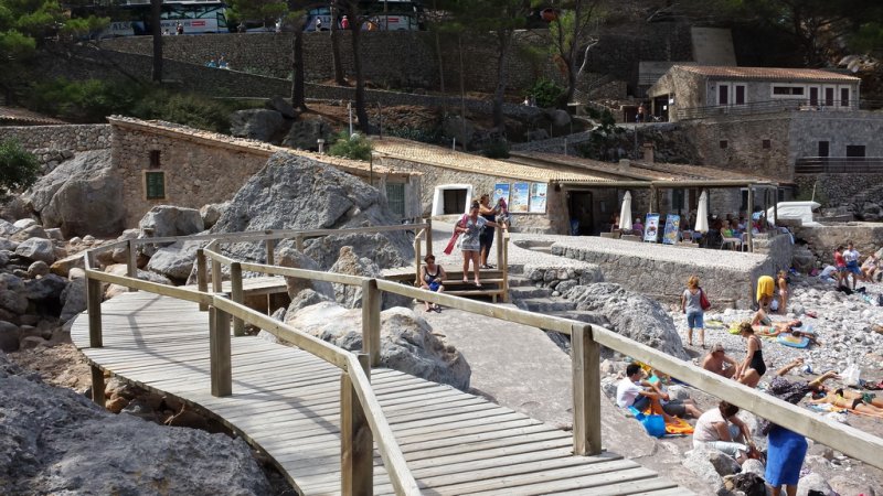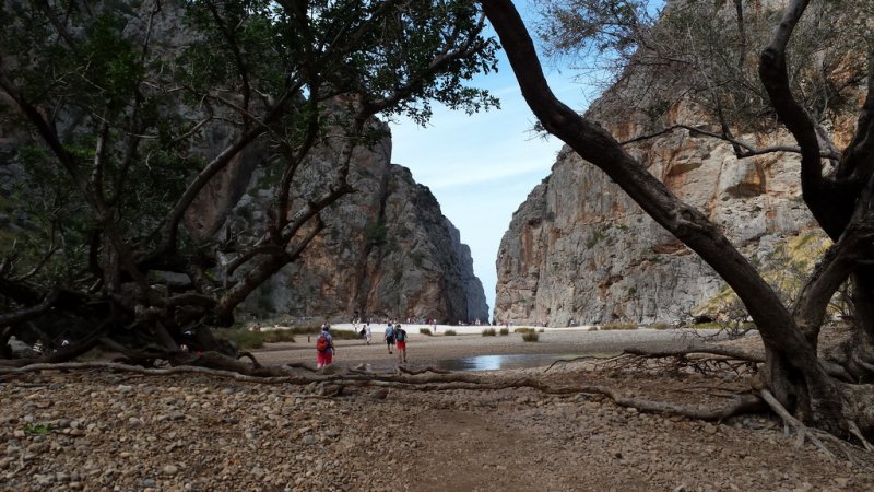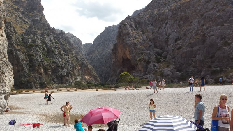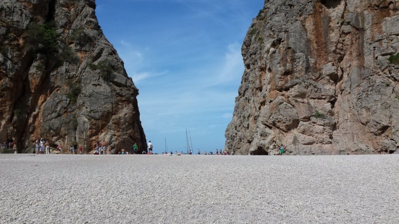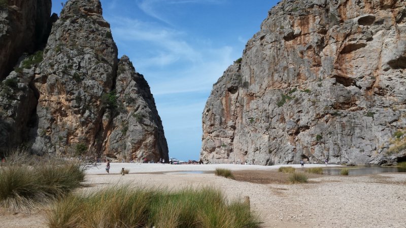 Ein absolutes Muss ist der Besuch des Torrent de Pareis, der Felsenschlucht, rund 600 Meter von Sa Calobra entfernt. Der ausgeschilderte Weg zur größten Felsenschlucht der Insel führt Dich durch ein Felsentunnel direkt in die Schlucht. Hier erwartet Dich ein atemberaubender Blick in den Sturzbach mit seinen über hundert Meter hohen Felswänden. Du kannst auch in den Torrent hineinwandern. Allerdings ist das nicht ungefährlich und Du solltest Fit sein und natürlich vernünftige Schuhe haben. Ideal ist, sich geführten Wandergruppen anzuschließen, da die Führer Gefahren kennen und wissen was zu beachten ist. Am Kiesstrand am Ausgang des Torrent de Pareis kannst Du ein Bad nehmen, wenngleich es in der Hochsaison hier sehr voll ist.